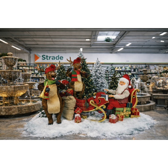 The Santa Claus & Reindeer Band (3 figures) animatronic scene has been designed as an engaging and lively Christmas display for professional installations. The scene features Santa Claus accompanied by reindeer, performing together in a sound-controlled musical setup. Both Santa and the reindeer move in perfect synchronisation with the music, creating a dynamic and immersive festive experience.