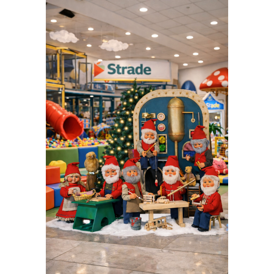 The animatronic Santa’s Workshop has been created as a centrepiece for professional Christmas decorations and festive environments. It represents the traditional workshop of Santa Claus, where his helpers are busy preparing toys, bringing a complete and immersive Christmas story to life. Thanks to advanced animatronic technology, the figures feature realistic movement, ensuring the scene captures attention and creates a memorable visual experience for visitors.