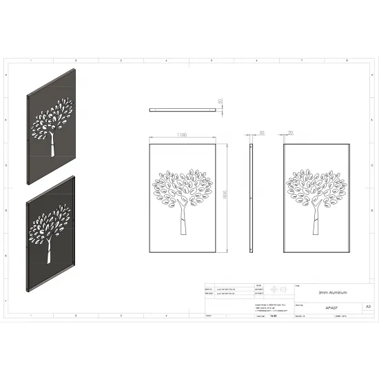 1100x50x1800 Aluminum Panel - decorative wall ADAPA7 (5pcs)