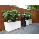 The top edge of these planters is flipped twice, giving them a great timeless appearance. The planters are made of high-quality reinforced fiberglass. Since the reinforcement has been extended to the corners, these corners cannot tear. The planter is colored completely and will therefore keep its color. As standard, all glossy glass fiber pots are delivered in RAL 901