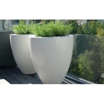 The top edge of these planters is flipped twice, giving them a great timeless appearance. The planters are made of high-quality reinforced fiberglass. Since the reinforcement has been extended to the corners, these corners cannot tear. The planter is all colored and will therefore keep its color. As standard, all glossy glass fiber pots are delivered in RAL 9016