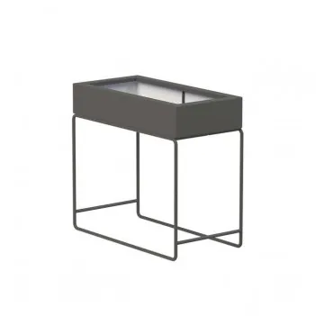 The 200 mm high fiberglass planter is placed on a solid base made of 12 mm thick round steel, powder coated in DB703.