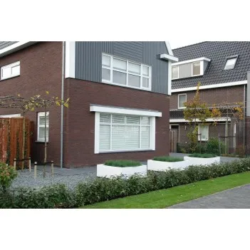 The top edge of these planters is flipped twice, giving them a great timeless appearance. The planters are made of high-quality reinforced fiberglass. Since the reinforcement has been extended to the corners, these corners cannot tear. The planter is colored all over the material and will therefore keep its color. As standard, all fiberglass planters are delivered in RAL 7021.