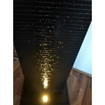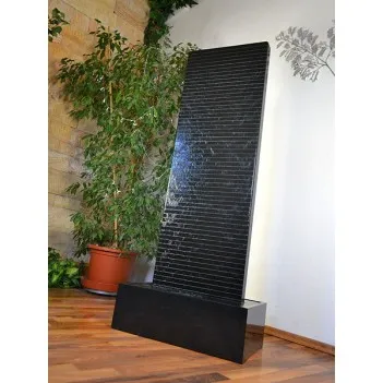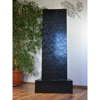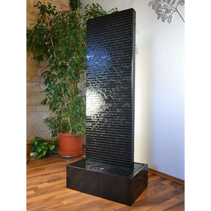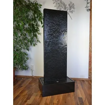 A natural stone wall made in Austria from the Scandinavian Nero granite evokes emotions and exudes the joy of life. Close your eyes, listen to the soothing sound of the water and inhale the healthy air in the room. Relax and rest after a busy day. All this gives this wall of water. This handcrafted water feature is offered in 3 sizes ranging in height from 140 to 180 cm. The compact dimensions of the natural stone chambers allow for easy installation anywhere. Water flows through the entire body, therefore the fountain can be effectively used as a humidifier. The lighting is variable and can be turned on or off at any time, even when the water is flowing. The absolute and timeless design of the water facility fits perfectly into the modern living atmosphere. Water function as an elegant addition to the @home salon and wellness equipment. The illustration shows model 1