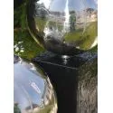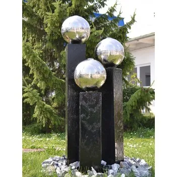 Granite ball: 3x stainless steel, Ø 25 cm, polished surface, water flowing down the ball