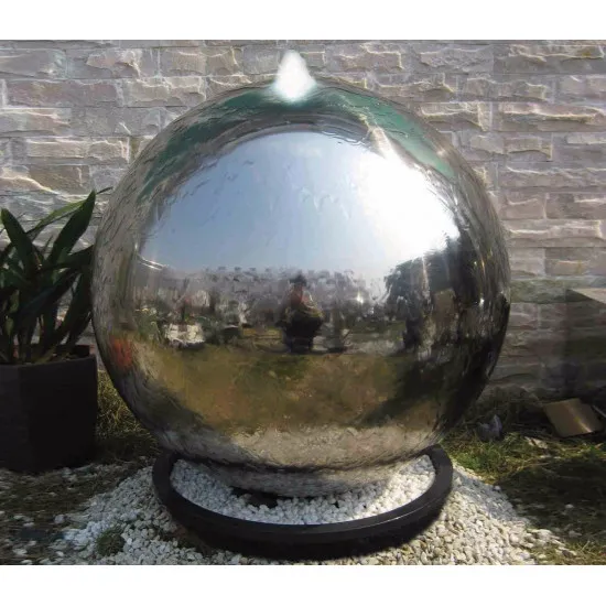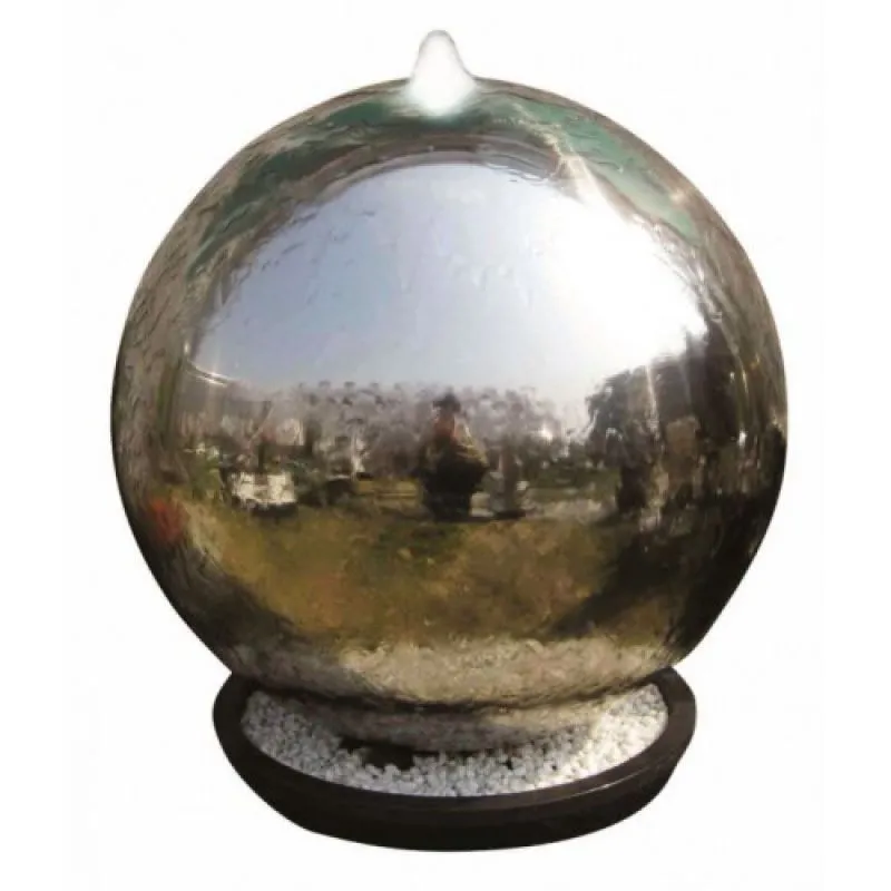 An original water cascade made of stainless steel in a contemporary style. Water illuminated by a cluster with LED diodes gently flows down the steel ball into the tank below. It looks great both at night and during the day. The product is easy to unpack and assemble without the use of tools.