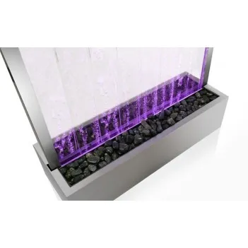 This water feature with bubbles and changing colors of LEDs will make your home or garden a unique and cozy place to relax. The frame is made of high-quality brushed stainless steel and the screen is made of strong acrylic. This water feature will be a unique focal point of your home and will look stunning at night.
