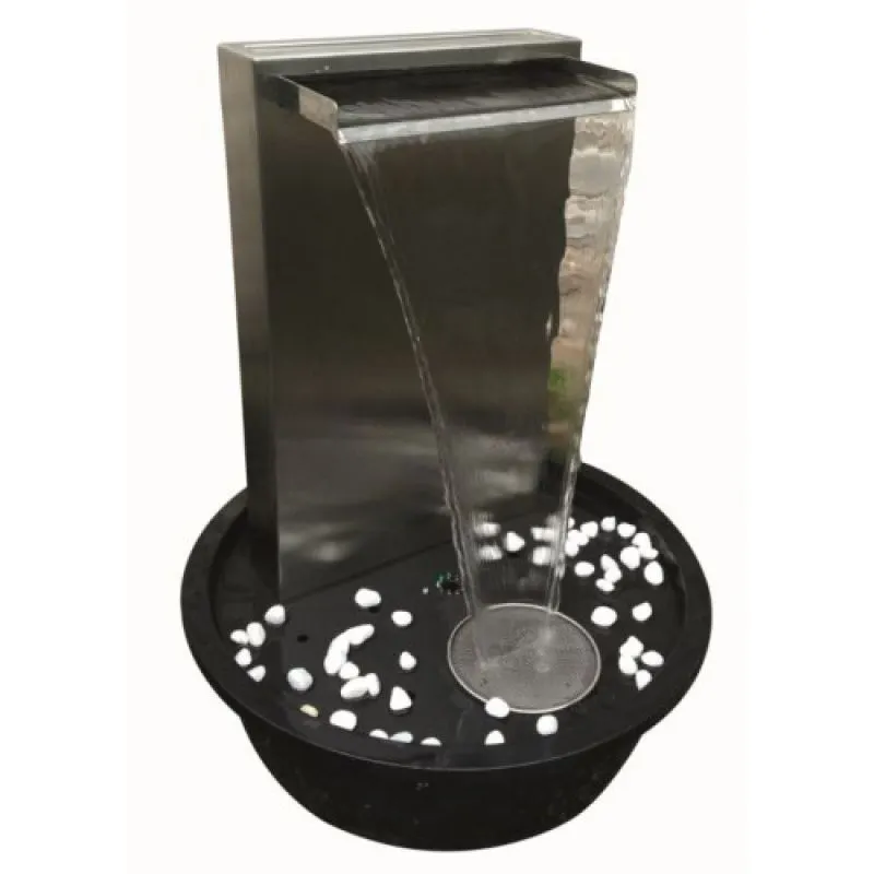 Stainless Steel Karachi Cascade - A fascinating water decoration with a cluster of LEDs to illuminate the water flowing into the reservoir below. Made of high-quality stainless steel, it will serve you for many years.