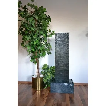 A natural stone wall made in Austria from the Austrian Diabas evokes emotions and radiates joy in life. Close your eyes, listen to the soothing sound of the water and inhale the healthy air in the room. Relax and rest after a busy day. All of this gives this wall of water. Water walls are ideal for improving indoor air quality in offices and practices as they bind dirt particles, ionize the air and evaporate enough water. This increases concentration and effectively prevents the skin and mucous membranes from drying out. Made in Austria - the unique Green Carat Diabas natural stone is handcrafted. The compact dimensions of the natural stone chambers allow for easy installation anywhere. Hear only a soft sound of water, no annoying noise from the pump. The water wall is easy to clean without moving the primer body through the front opening. Halogen lighting is variable and can be turned on and off at any time, even when the water is flowing. The absolute and timeless design of the water facility fits in with the modern living atmosphere. Conclusion: an elegant piece of equipment for livestyle and wellness @home.