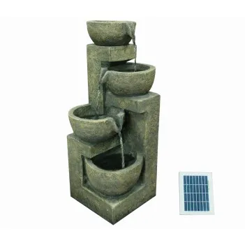 An original fountain with water flowing through four stone bowls. Fully free-standing - does not require connection to the water supply and is solar powered. The fountain is light and durable because it is made of high-quality polyresin, so it is not afraid of even the most capricious weather conditions.
