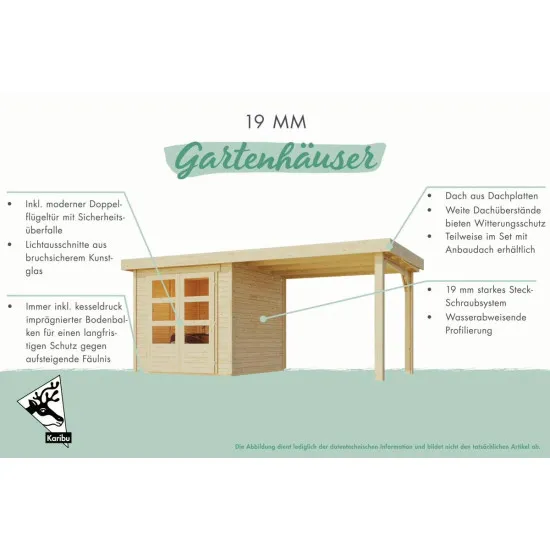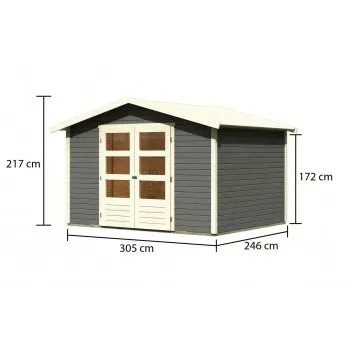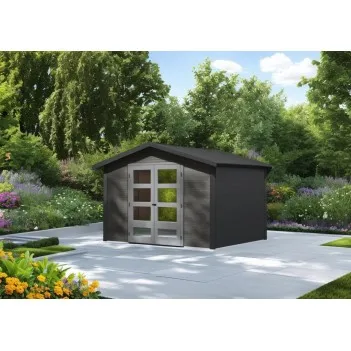 The 9.1 m² gable roof gives it a timeless look, and the availability in brown-gray or natural allows for individual adjustment to the user's taste and needs. The spacious, double-leaf doors with glazing let in a lot of daylight, providing a bright and pleasant interior. The cottage is equipped with additional security in the form of a safety hatch, which increases protection against unauthorized access.