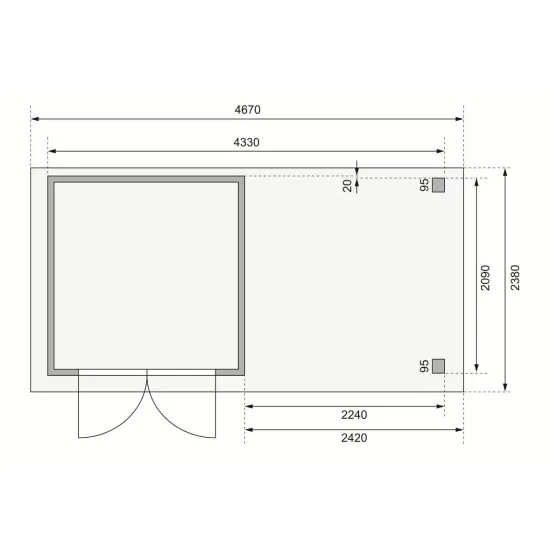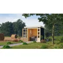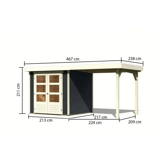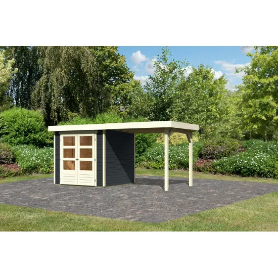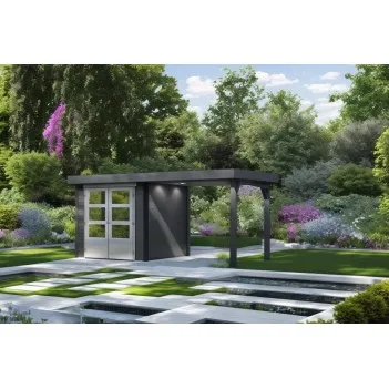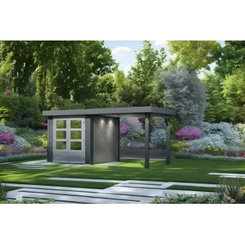 Whether modern, classic or elegant, the Askola 2 garden house will fit into any garden atmosphere. With external dimensions (W x D) of 213 x 217 cm, it is the perfect size for storing garden tools or creating a cosy place to relax in your own garden. The house is also available with an attached roof in widths of 2.40 m or 2.80 m. It is ideal as a storage space for garden tools or a comfortable place to sit during barbecue evenings. Nothing stands in the way of a safe barbecue on a rainy summer day.
