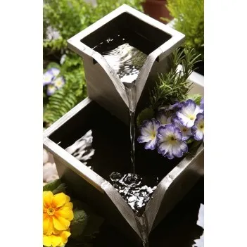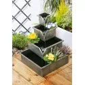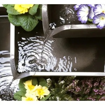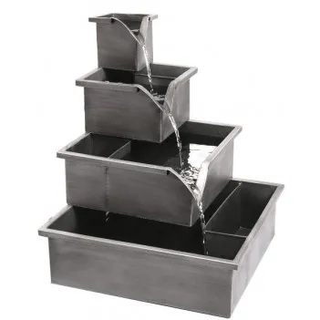 Water cascades flow down in four layers as one stream. This fountain is handmade. It will surely bring the relaxing sound of water to your garden and home. It is powered by a pump with a capacity of 500 l / h (liters per hour), which is energy efficient and cheap to run.