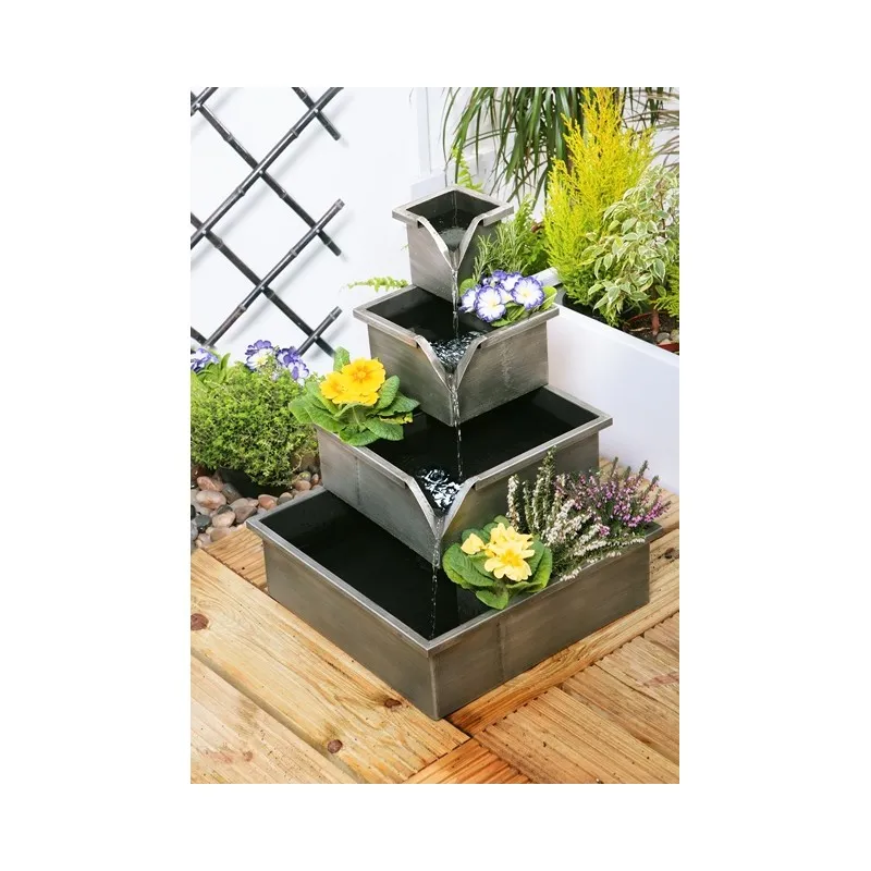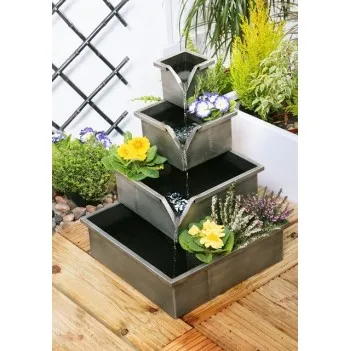 This handcrafted fountain will blend in perfectly with your garden thanks to the integrated pots. Enjoy the sound of the water from these four levels of the fountain, which also gives you the opportunity to grow small herbs and other small plants.