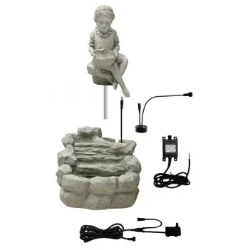 The fountain is self-contained, the water is pumped from the reservoir into the shell and then flows back into the reservoir. The integrated LED lamp ensures that the fountain looks very good both during the day and at night. It is resistant to UV radiation and frost.