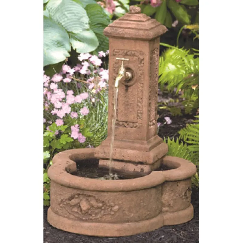 This fountain is characteristic of the Massarelli family design. It is a decorative design with a golden tap that will add an elegant character to any garden by creating a charming focal point. The quality of this product is embodied in an elegant, simple style. There is nothing more beautiful or relaxing than the soft sound of a fountain bringing peace to your outer space.
