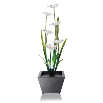 Your home or garden. Water flows from flower to flower and penetrates the substrate. At night, this elegant fountain becomes a