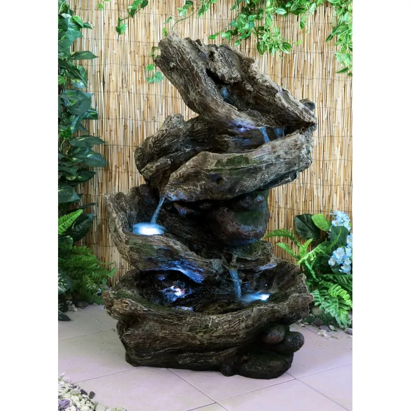 This pond masterpiece has been exquisitely crafted and designed to look almost exactly like natural wooden logs. The water in it moves down through several illuminated tree trunks and down into the pool, adding a true sense of tranquility to wherever it is placed.