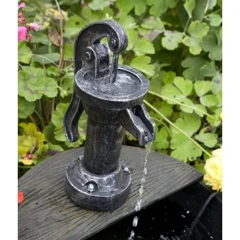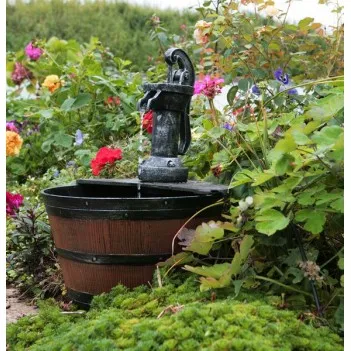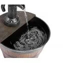 It is a freestanding, self-contained water fountain imitating an antique faucet with water pouring into a wooden barrel. It is made of high-quality Polyresin (resin), making it weather-resistant and perfect for outdoor use. There is no need to hide the tank, you can place the fountain anywhere on your patio, patio or garden!