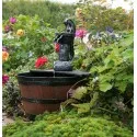 It is a freestanding, self-contained water fountain imitating an antique faucet with water pouring into a wooden barrel. It is made of high-quality Polyresin (resin), making it weather-resistant and perfect for outdoor use. There is no need to hide the tank, you can place the fountain anywhere on your patio, patio or garden! Enjoy listening to the soothing music of the flowing water. This fountain is sure to create the atmosphere of a country cottage from a bygone era.