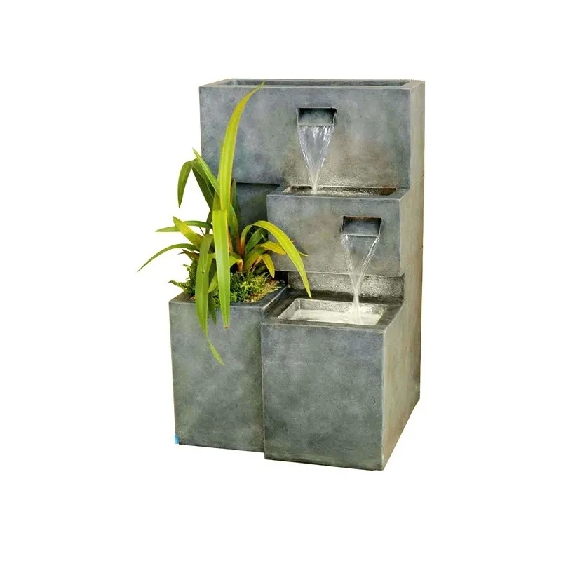 This modern stone effect water feature is sure to be a great addition to your home or garden, and is sure to add a sense of minimalist style to any setting. This perfectly designed piece will add a contemporary touch to any garden, as well as offices and other rooms with an elegant appearance. Complete with a pump, you will be able to run this fountain in no time. It is completely self-contained so all you have to do is add water. Thanks to the integrated planter, this versatile function will bring some life and color to your patio and patio and can even be used indoors. The added LED lights in the cups make this feature beautiful during the day and great at night by illuminating the water supply to the tank.
