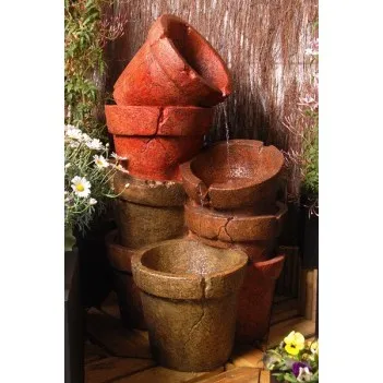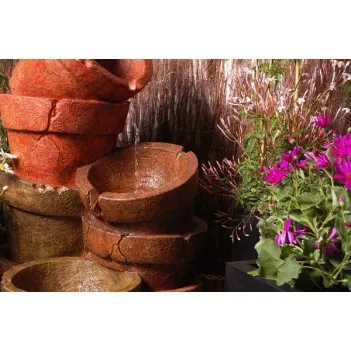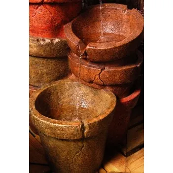 This attractive water feature, featuring 8 cracked plant pots piled together in three tiers, has been wonderfully crafted out of high quality polyresin to create this lovely water feature. Enjoy relaxing to the sound of water gently cascading down three of the eight rustic-looking plant pots, adding a real sense of tranquillity to any setting in which it is placed. Appearing as an authentic water feature, it is sure to make a fantastic addition to your garden or home.