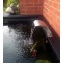 The pipes extending from the back or bottom of the cascade are approximately 1.1 inch (3 cm) internally threaded. We supply a threaded 25mm stub for easy connection of the cascade outlet to a 25mm hose. Please note that for larger widths of 90cm and above there is more than one pipe at the back - so you will need to use a hose splitter (2-out or 3-out) to connect one pump to the cascade.