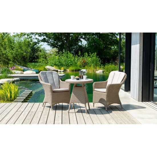 The Hazelmere Bistro Table 0.6m brings together timeless design and outdoor durability. Crafted with a powder-coated aluminium frame and hand-woven surface, this round bistro table is weather-resistant and easy to maintain, making it perfect for garden lounges, patios and balcony settings. The table top features a ceramic-effect tempered glass insert that adds a refined, practical surface for drinks, snacks or décor items. With dimensions of 650 mm wide, 740 mm high and 650 mm deep, the table fits comfortably into smaller outdoor spaces while offering plenty of surface area for social occasions. Weighing 7 kg, it is lightweight yet stable enough to remain a reliable feature of your outdoor setup. Coordinate with Hazelmere armchairs or stacking chairs to complete a cosy seating area that invites relaxation and conversation. Backed by a 3-year warranty, this table reflects the quality craftsmanship of the Hazelmere collection and provides peace of mind for long-term enjoyment.