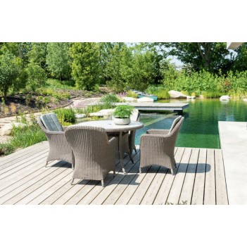 Hazelmere Round Table 1.15m – Outdoor Dining Table, Grey Weave