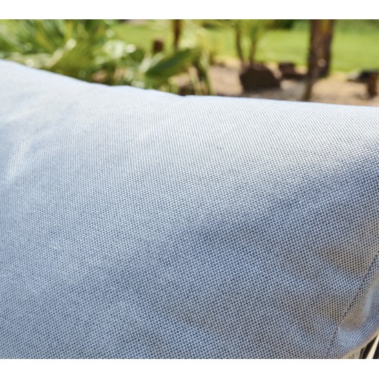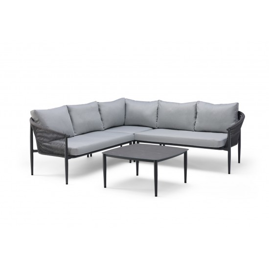 The Kyoto Corner Lounge Set brings effortless elegance and ergonomic comfort to modern outdoor living areas such as patios, terraces, or garden retreats. The set includes a left and right corner sofa, each measuring 1440 mm width × 810 mm depth × 750 mm height, a corner module of 810 × 810 × 750 mm, and a coffee table (800 × 800 × 400 mm) with a ceramic-printed glass tabletop that is stylish and easy to clean. Crafted with a rust-resistant aluminium frame, this lounge set offers durability and long-lasting performance. Slim rope accents add subtle texture and a refined visual interest to the overall design, while the light grey polyester cushions provide plush support for relaxed seating. Kyoto’s modern silhouette and low-maintenance materials make it ideal for contemporary outdoor spaces. Whether entertaining guests or enjoying a quiet afternoon outside, this set offers both comfort and timeless style. Backed by a 3-year warranty, it is a quality investment in outdoor comfort and design.