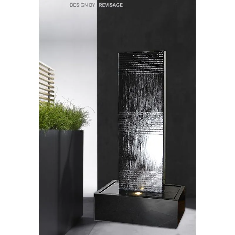 Water wall: Granite Nero Assoluto, fully flooded, front partially grooved - smooth back