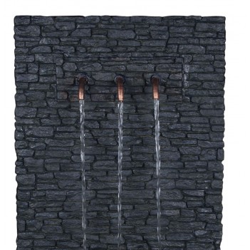 The Partick Pouring Spouts garden water feature is a stylish Rock Falls fountain designed for outdoor spaces such as gardens, patios, and entrances. Made from durable weather-resistant resin, it ensures long-lasting performance in various conditions. Powered by mains electricity, it delivers a consistent and relaxing water flow. With compact dimensions of L 38 x W 34 x H 80 cm and a weight of 14 kg, it is easy to position. This decorative feature combines natural stone aesthetics with modern functionality.