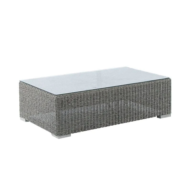 Monte Carlo is a collection of furniture produced at a factory in Cebu. Textured 3mm synthetic rattan gives a natural feel, while dark gray upholstered cushions complete the gray weave.