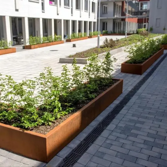 A modern flower pot made of Corten steel (stainless steel) that perfectly matches your interior and garden.