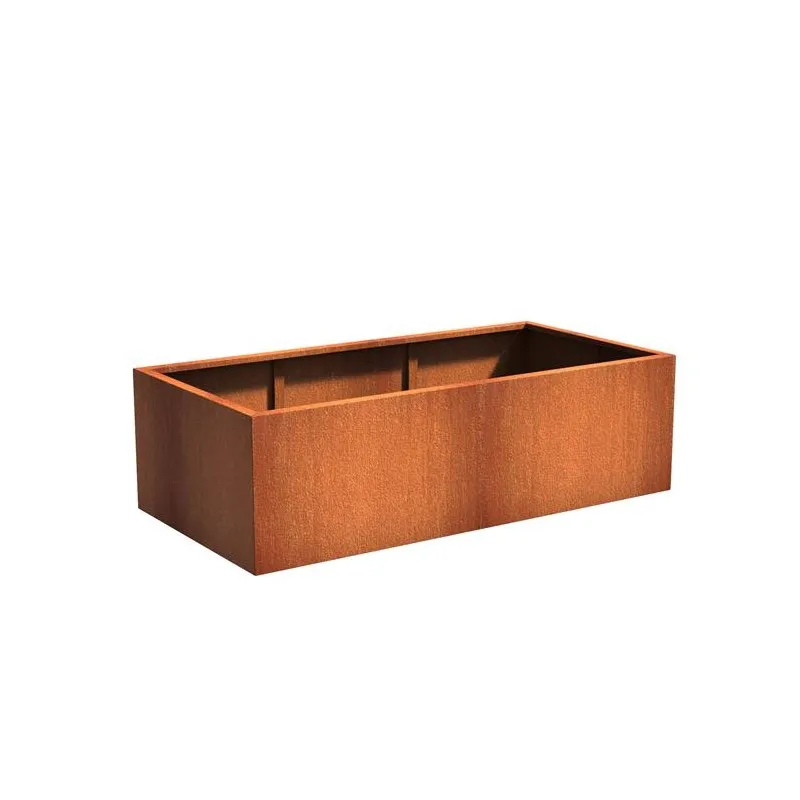 Corten steel, also known as weathering steel, is a steel alloy made of iron with the addition of copper, silicon, nickel and chromium. As soon as Corten Steel is exposed to the elements, it has a natural airflow and forms a protective layer of rust, it can take several months. This inherently etched rust layer provides protection against further corrosion. A feature of Corten Steel is orange-brown (rust color) and its longevity.