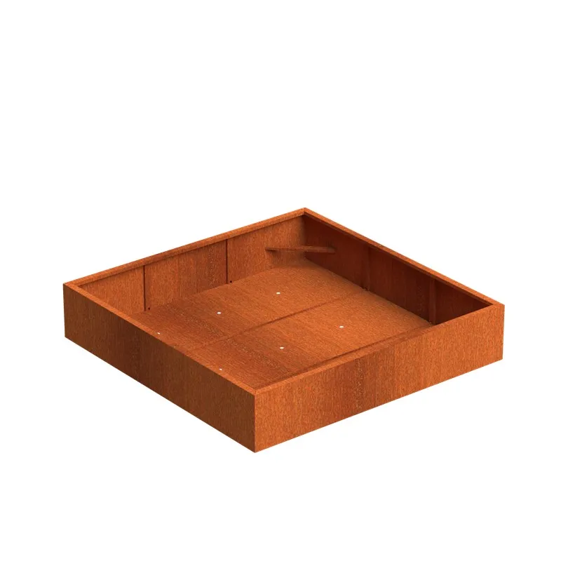 Corten steel, also known as weathering steel, is a steel alloy made of iron with the addition of copper, silicon, nickel and chromium. As soon as Corten Steel is exposed to the elements, it has a natural airflow and forms a protective layer of rust, it can take several months. This natural, firm layer of rust provides protection against further corrosion. A feature of Corten Steel is orange-brown (rust color) and its longevity.