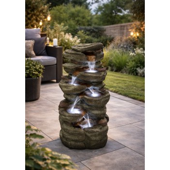 Solar Wellington Rock Falls is an elegant outdoor water feature inspired by natural rock waterfalls. Its carefully crafted design replicates the look of natural stone formations, creating a realistic and visually appealing centrepiece for gardens, terraces, hotel courtyards, or public outdoor areas.