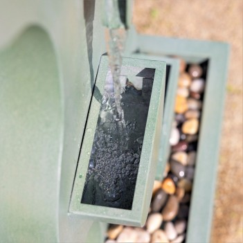 The Monsanto cascading zinc water feature is a stylish outdoor fountain designed to enhance gardens, patios and terraces. Crafted from durable zinc with a green finish, it features four tiered bowls arranged in a flowing wave design. Standing 122cm tall, it includes an integrated reservoir and a powerful 11W pump (230-240V / 50Hz) delivering 700 LPH. The generous 10m cable provides flexible placement in any outdoor space.