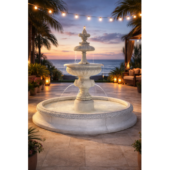 Water flows down the center and side to the basin or pool below. One of the largest fountains, with multiple drainage sources that makes a loud sound of falling water. Representative product used as a focal point for larger service / production facilities. In combination with halogen lighting, it gives an electrifying visual effect, drawing attention from a distance. The product is perfect for a pond, it can also be placed on a dry surface. The classic form of the fountain is perfect for any garden, park, restaurant or residence.