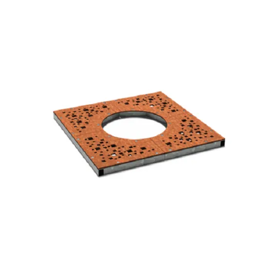 Corten steel grates for trees provide moisture and oxygen, protect the roots of trees.
