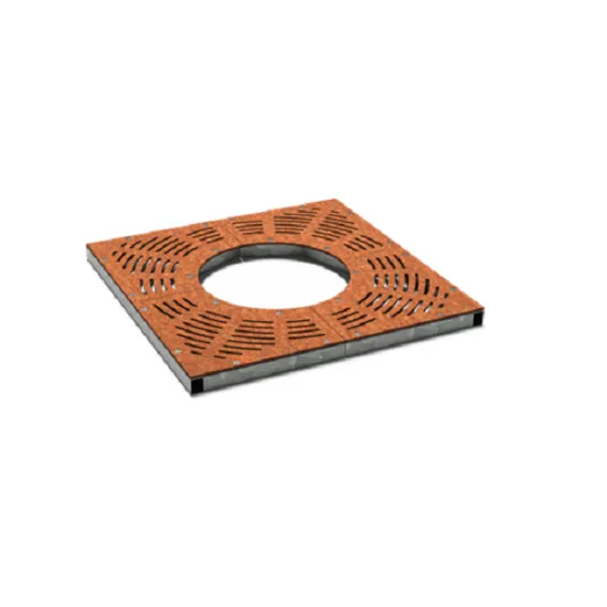 Corten steel grates for trees provide moisture and oxygen, protect the roots of trees.