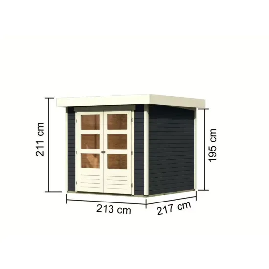 Qu'elle soit moderne, classique ou élégante, l'abri de jardin Askola 2 s'intègre dans toutes les ambiances de jardin. Avec des dimensions extérieures (L x P) de 213 x 217 cm, c'est la taille idéale pour ranger les outils de jardinage ou pour créer un endroit confortable pour se détendre dans votre propre jardin. La maison est également disponible avec un toit attenant dans des largeurs de 2,40 m ou 2,80 m. Elle est parfaite comme espace de rangement pour les outils de jardin ou comme endroit confortable pour s'asseoir lors des soirées barbecue. Rien ne vous empêche de griller en toute sécurité lors d'une journée d'été pluvieuse.