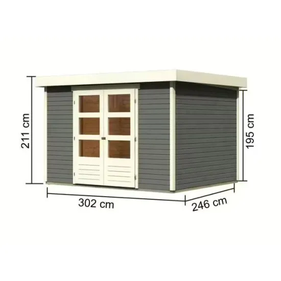 L'abri de jardin Askola 5 est un exemple unique de solution fonctionnelle et esthétique pour tout jardin. Fabriqué en bois d'épicéa naturel dans un style nordique, il est disponible en version brute ou dans les tons tendance de gris terra et anthracite, peints selon le système avancé Karibu. Grâce au système de connexion par fiche et vis, le montage de la maison est rapide et ne nécessite pas de compétences spécialisées.