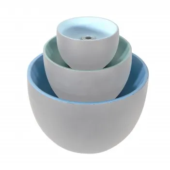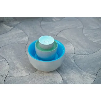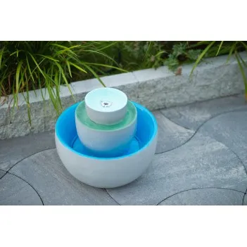 Świeża, nowoczesna fontanna na tarasie z 3 kolorowe wnętrzami.