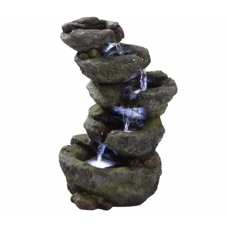 Fontaine, cascade, pots à 4 niveaux, LED, hauteur 119 cm