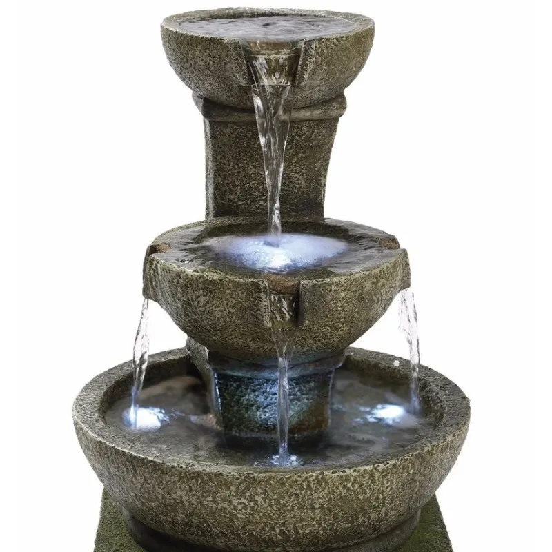 Une fontaine à eau traditionnelle deviendra un excellent ajout à votre maison ou votre jardin. Il a été fabriqué en résine organique de haute qualité et ressemble à du bois, du métal et de la pierre. Les LED sont cachées dans les deux seaux, ce qui fait de la fontaine un délice même la nuit.