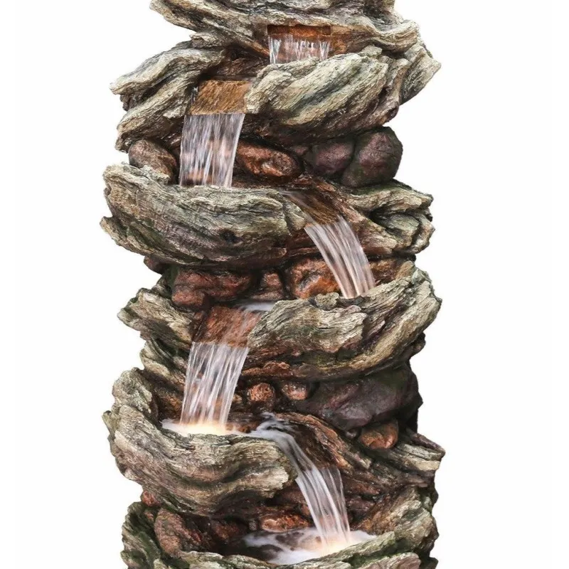 Cette belle fontaine se compose de quatre pots de lumières qui ont été magnifiquement conçus pour ressembler presque exactement à de vrais pots en argile naturelle. Détendez-vous en écoutant l\'eau douce couler de la fontaine, ce qui ajoute un véritable sentiment de paix à l\'endroit où elle est placée.