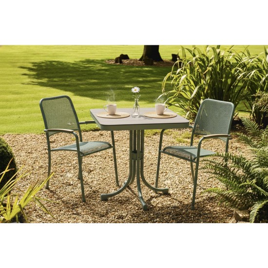La Bergen Metal Square Bistro Table est une table bistro métallique compacte, idéale pour les petits espaces extérieurs comme balcons, terrasses ou coins de jardin. What’s included : 1 × Bergen Metal Square Bistro Table, fabriquée en aluminium vert à revêtement poudre, résistant à la corrosion et aux intempéries. Product specs : Largeur 700 mm × Hauteur 740 mm × Profondeur 700 mm, poids 16 kg. Garantie : 3 ans.