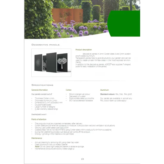 Murs décoratifs (panneaux) : contribuent à structurer votre jardin et peuvent être utilisés pour créer des espaces intimes privés. Les murs créent des espaces abrités dans le jardin dans les environnements les plus vulnérables. De cette façon, vous pouvez efficacement arrêter le vent et d'autres influences météorologiques de l'environnement.