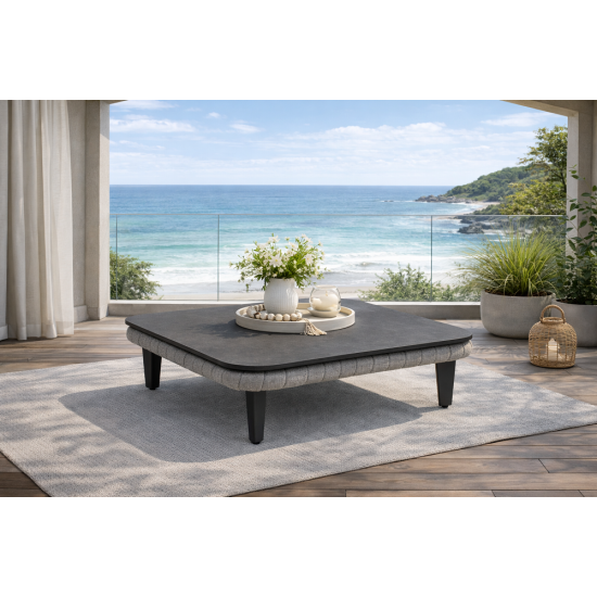 La Cordial Luxe Light Grey Coffee Table est une table basse élégante et fonctionnelle pour jardin, terrasse ou patio. Dimensions (Product specs) : 800 × 800 × 240 mm, poids env. 14 kg. Structure en aluminium thermolaqué résistante aux intempéries avec tressage en corde Olefin et plateau HPL durable facile à entretenir. Contenu : 1 × table basse Cordial Luxe Light Grey. Garantie : 5 ans sur la structure et le tressage.